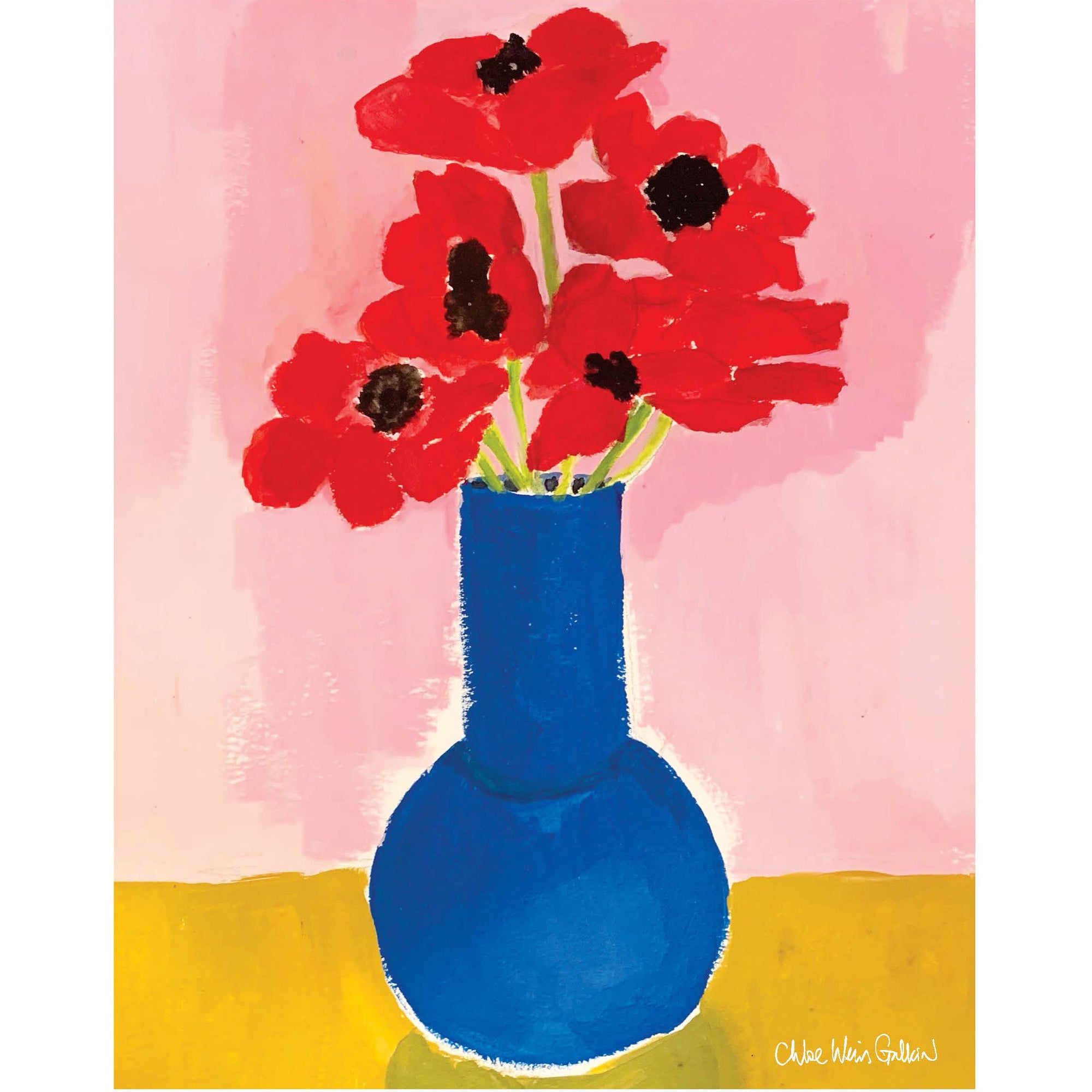 Blue Vase with Red Flowers Print